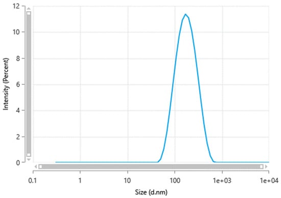 Minocycline nanocrystals were prepared using the antisolvent nanoprecipitation method. This method offers a simple, direct, and easy approach to preparing nanocrystals [19,20]. In simple terms, this method includes dissolving the drug in a suitable solvent to prepare a solution, then adding this solution to nonsolvent or antisolvent to allow drug displacement to the antisolvent under continuous stirring, enabling the formation of finely dispersed nanocrystals [21,22]. As previously reported, this method has been applied to prepare nanocrystals of various antibiotics [19,23]. Minocycline nanocrystals showed a particle size of 147.4 ± 7.8 nm, as shown in Figure 1. Nanocrystals are defined as a type of nanoparticle with particle size between 1 and 1000 nm [22,24]. Despite the fact that there is debate about the classification of nanocrystals according to size, in pharmaceutics, nanocrystals are defined as having a particle size of less than 1000 nm [20,25]. However, in colloid chemistry, particles should have a size below 100 nm to be classified as nanoparticles [21,26]. Refining the size in the nanometer range increases the surface area, which affects various parameters such as dissolution [19,27]. The nano size facilitates the transdermal delivery of molecules by enhancing the penetration through skin layers [22,28].
