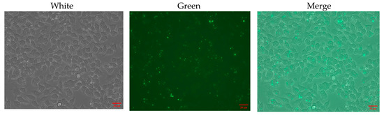 In order to evaluate the effect of phage-delivered composites on intracellular MRSA clearance, an intracellular MRSA-infected cell model was constructed. As illustrated in Figure 7, following the co-culture of cells with MRSA under antibiotic pressure, green fluorescently labeled MRSA strains were discernible under fluorescence microscopy as intracellular, with no fluorescent bacteria observed outside the cells. The number of extracellular and intracellular bacteria was determined by plate culture (Figure S6). No colonies were observed outside the cells, and the number of intracellular bacteria was 3 × 10⁶ CFU, indicating that the cell model of intracellular MRSA infection was successfully constructed.
