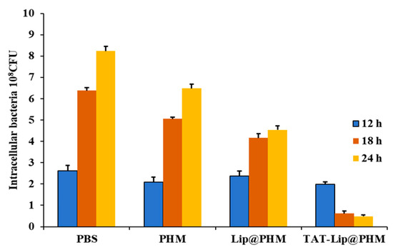 Plate colony count of intracellular MRSA after different times of TAT-Lip@PHM treatment.