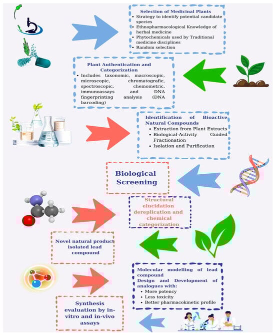 In the initial phases of drug development, the expertise of botanical specialists and ethnobotanists is vital for identifying and gathering plant species that may have therapeutic properties. The selection of MPs can be influenced by various information sources, including traditional knowledge often derived from indigenous and local communities, or can be performed randomly. Ethnobotanical studies and field surveys may be conducted to spot potential plant candidates with promising attributes. This collection process serves as a crucial first step toward accessing the diverse array of bioactive compounds present in the plant kingdom [225].