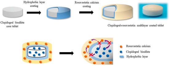 - Seo, K.-S.; Han, H.-K. Multilayer-Coated Tablet of Clopidogrel and Rosuvastatin: Preparation and In Vitro/In Vivo Characterization. Pharmaceutics 2019, 11, 313. [Google Scholar] [CrossRef]