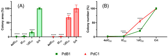 These results reinforce the relevance of colony formation assays as a complement to IC50-based assessments and highlight the potential of PdB1, especially at lower, sublethal concentrations, as a candidate for further studies aimed at targeting tumor-cell persistence and resistance mechanisms.