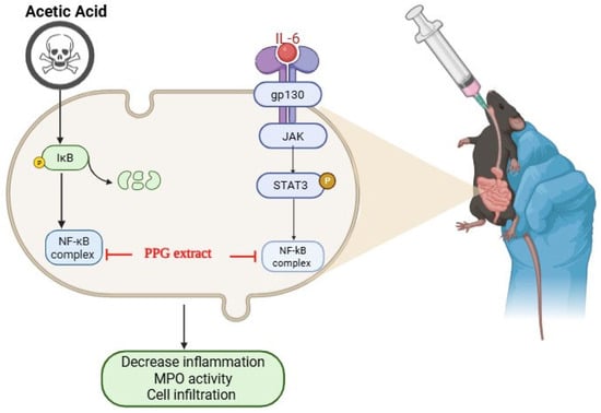 Schematic representation of Acetic acid induces IBD management by PPG extract.
