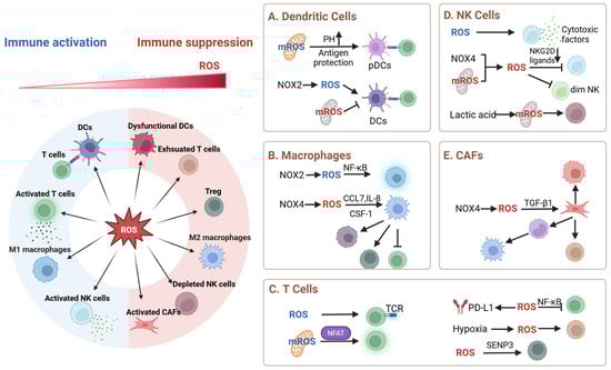 ROS-mediated immunomodulation in the TME. Created using https://BioRender.com.