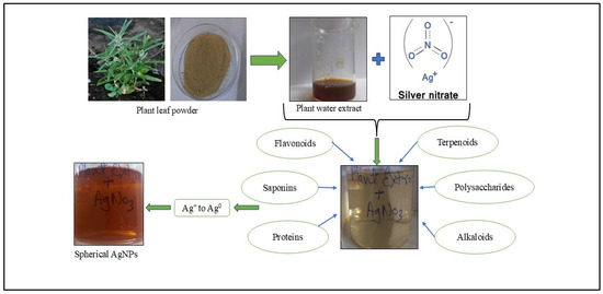 - Jain, S.; Mehata, M.S. Medicinal Plant Leaf Extract and Pure Flavonoid Mediated Green Synthesis of Silver Nanoparticles and their Enhanced Antibacterial Property. Sci. Rep. 2017, 7, 15867. [Google Scholar] [CrossRef] [PubMed]