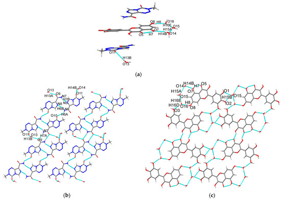 Figure 2a). TMZ and water molecules form a two-dimensional (2D) planar structure via hydrogen bonds (