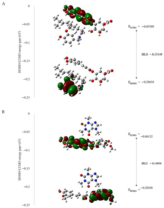 where EHOMO and ELUMO are the HOMO and the LUMO energies, obtained from DFT calculation, respectively. A high HLG value typically indicates greater molecular stability and lower chemical reactivity. The antioxidant potential of a compound can be inferred from its HOMO energy level; lower HOMO values suggest weaker electron-donating ability and, consequently, diminished antioxidant capacity [39,40,41].