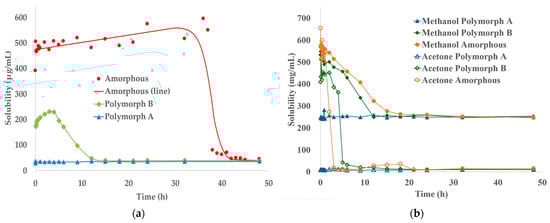- Solubility measurements revealed that both Polymorph B and the amorphous form gradually transformed into Polymorph A in all solvents tested (acetone, methanol, and water), confirming thermodynamic convergence.