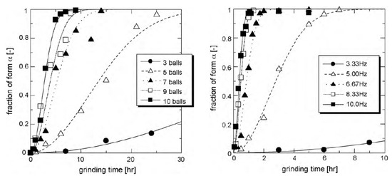 - Macfhionnghaile, P.; Hu, Y.; Gniado, K.; Curran, S.; Mcardle, P.; Erxleben, A. Effects of Ball-Milling and Cryomilling on Sulfamerazine Polymorphs: A Quantitative Study. J. Pharm. Sci. 2014, 103, 1766–1778. [Google Scholar] [CrossRef] [PubMed]