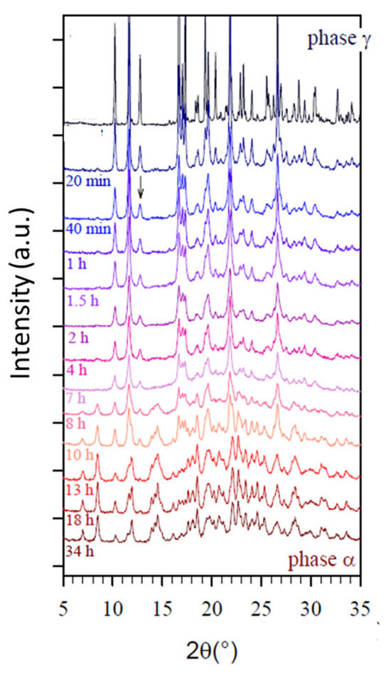 - Threlfall, T. Structural and Thermodynamic Explanations of Ostwald’s Rule. Org. Process Res. Dev. 2003, 7, 1017–1027. [Google Scholar] [CrossRef]