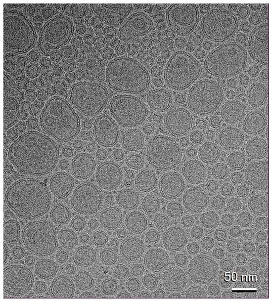 The ultrastructure of the BT transfersomes was investigated via cryogenic-Transmission Electron Microscopy (cryo-TEM). The vesicle dispersions (4 μL) were deposited onto glow-discharged EM grids, blotted, and vitrified by freezing into ethane using an automatic plunge freezer (Vitrobot MarkIV, FEI Company/ThermoFisher Scientific, Waltham, MA, USA). The vitrified samples were observed on a 200 kV electron microscope (Glacios2, FEI). Micrographs were taken at a magnification of 92,000× under low electron dose conditions on a Falcon 4i direct electron detector (ThermoFisher Scientific).