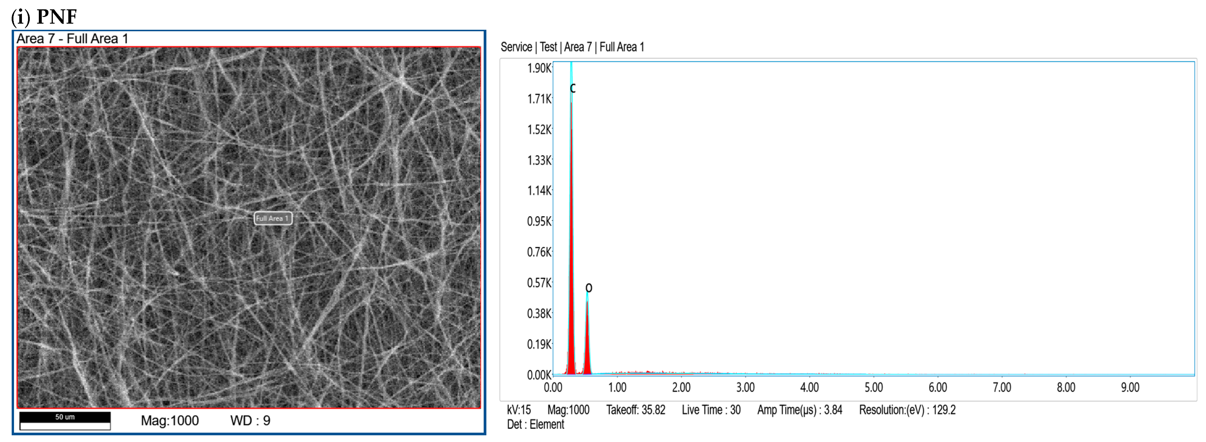 | PNFs | Element | Weight % | Atomic % | Error % |