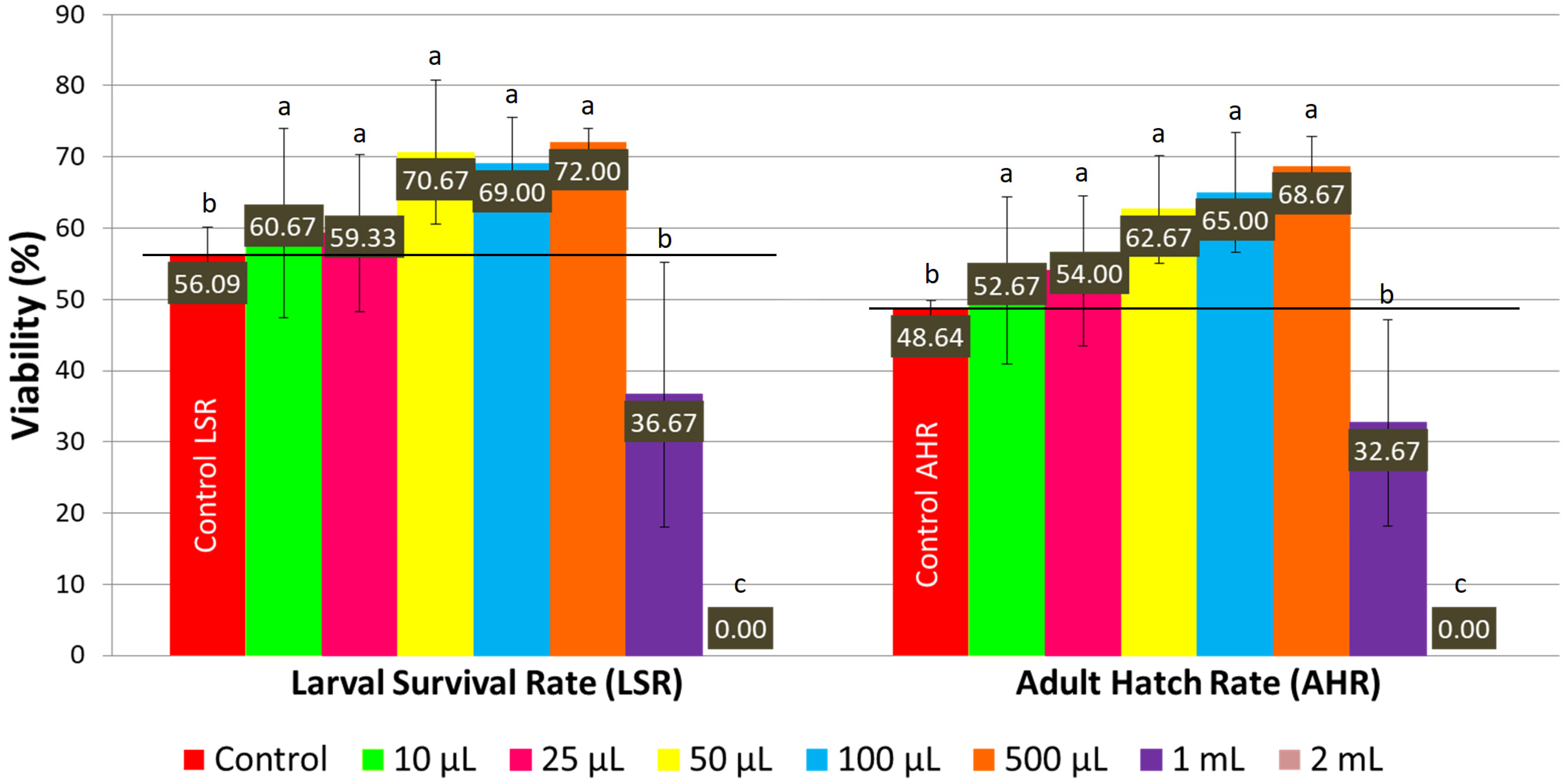 2.6. In Vivo Drosophila melanogaster Viability Tests