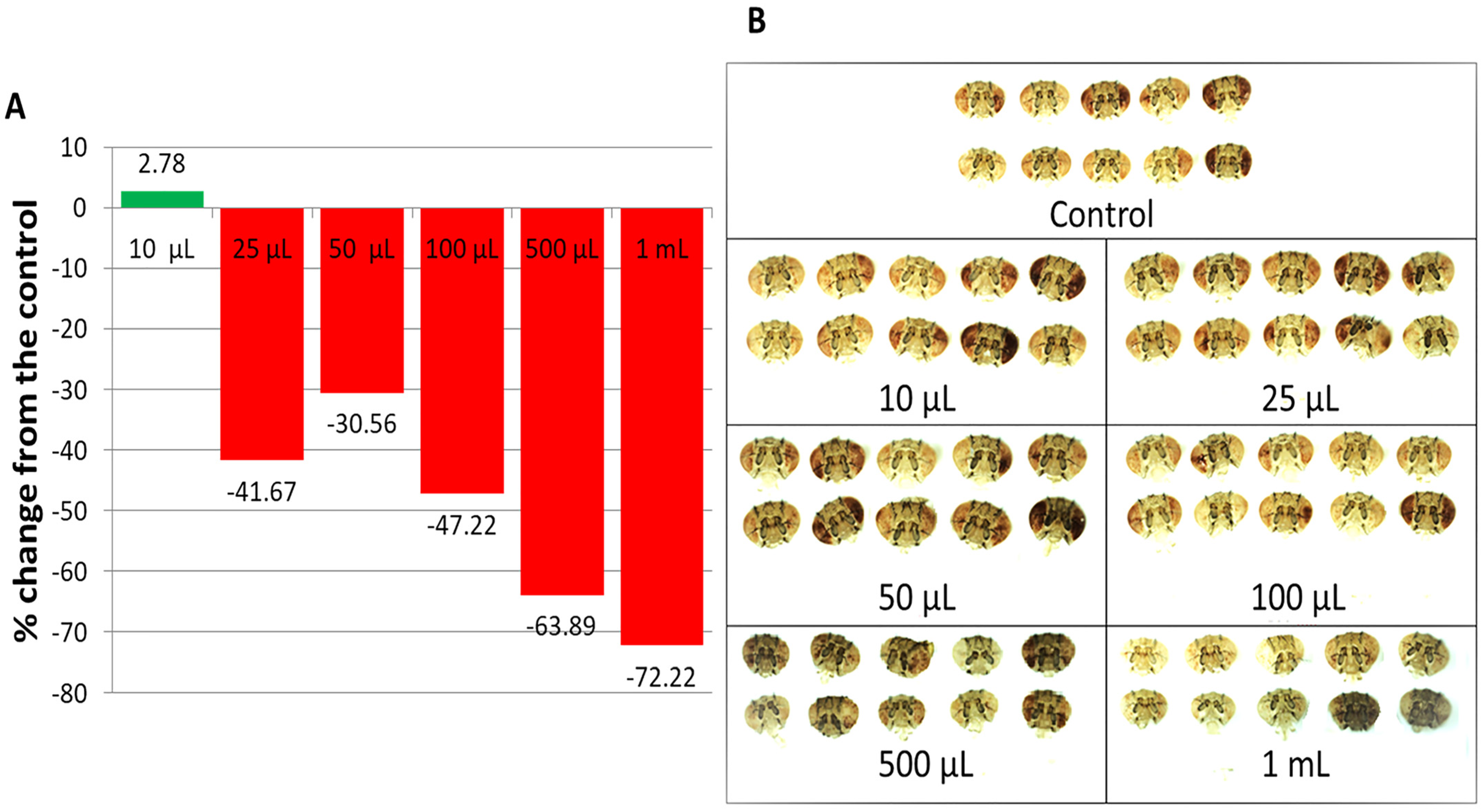 2.7. Drosophila melanogaster Eye Pigment Quantification