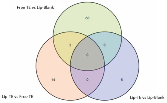 For statistical analysis, the R packages EdgeR 4.7 [20,21] and DESeq2 1.4 [22] were used to identify differentially expressed genes. Both tools employ a negative binomial distribution to model count data and utilize a generalized linear model (GLM) framework. Tests performed for this experiment consist of 3 different treatments (Lip-TE, Free TE, Lip-Blank), each with 5 replicates. The following comparisons were made: Free TE vs. Lip-Blank, Lip-TE vs. Free TE, and Lip-TE vs. Lip-Blank.
