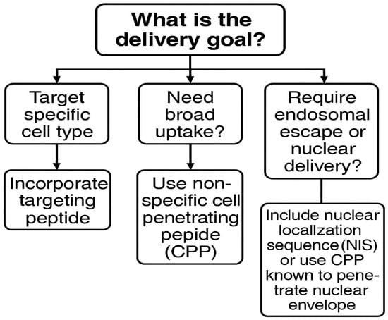 Stimuli-responsive sequences, such as pH-, redox-, or enzyme-cleavable motifs, are designed to remain functionally inactive in circulation but become activated in the acidic microenvironment of endosomes, the reductive milieu of the cytosol, or in the presence of disease-associated proteases, thereby facilitating spatiotemporally controlled cargo release. Consequently, the intracellular trafficking routes and release mechanisms can be directly correlated with the physicochemical attributes and functional motifs, establishing a clear structure–function paradigm for the rational design of peptide-based delivery systems [41,42].