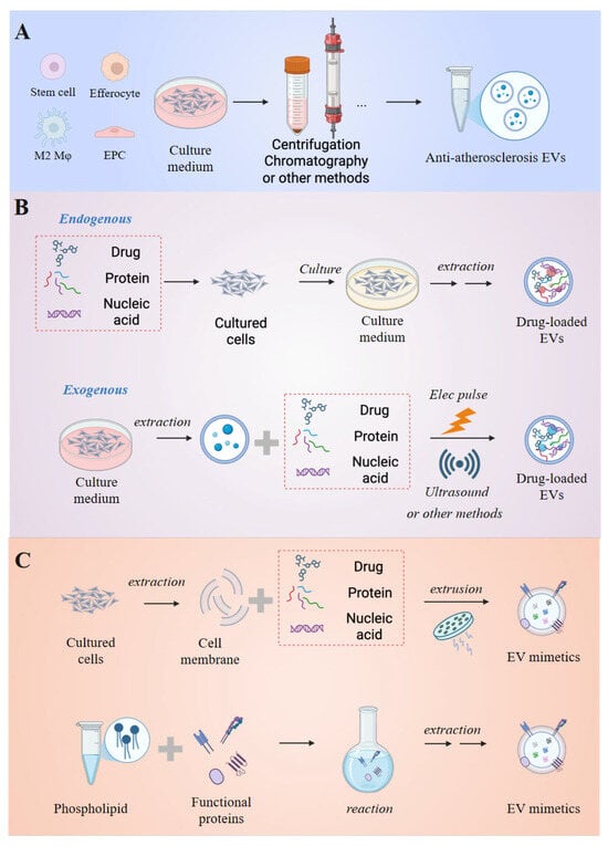 - Li, C.L.; Fang, F.; Wang, E.R.; Yang, H.Q.; Yang, X.R.; Wang, Q.W.; Si, L.L.; Zhang, Z.; Liu, X.H. Engineering extracellular vesicles derived from endothelial cells sheared by laminar flow for anti-atherosclerotic therapy through reprogramming macrophage. Biomaterials 2025, 314, 122832. [Google Scholar] [CrossRef]