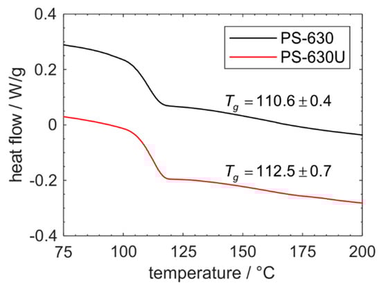 Representative DSC thermograms of PS-630 and PS-630U and glass transition temperatures (n = 3).