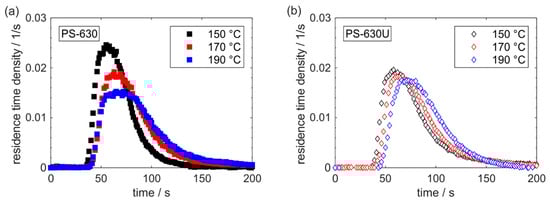 Residence time distribution of PS-630 (a) and PS-630U (b).