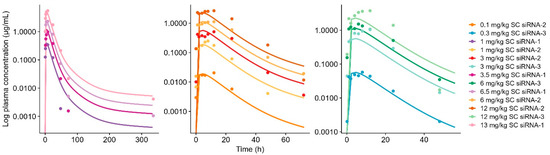 - Sten, S.; Cardilin, T.; Antonsson, M.; Gennemark, P. Plasma Pharmacokinetics of N-Acetylgalactosamine-Conjugated Small-Interfering Ribonucleic Acids (GalNAc-Conjugated siRNAs). Clin Pharmacokinet. 2023, 62, 1661–1672. [Google Scholar] [CrossRef] [PubMed]
