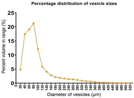 Percentage distribution of vesicle sizes in the foamed S14 SM10% formulation.