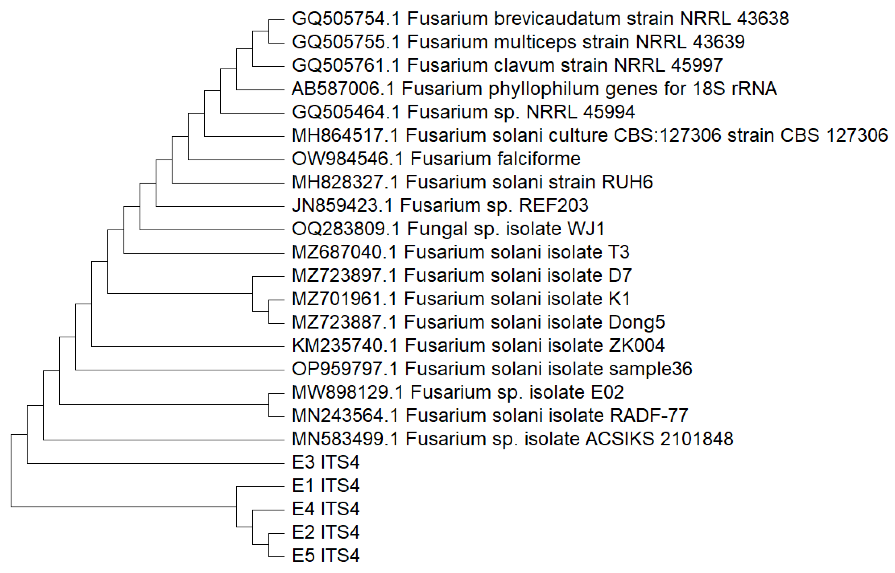 - Leslie, J.F.; Summerell, B.A. The Fusarium Laboratory Manual; Blackwell Publishing: Carlton, Australia, 2006; pp. 111–119. [Google Scholar]