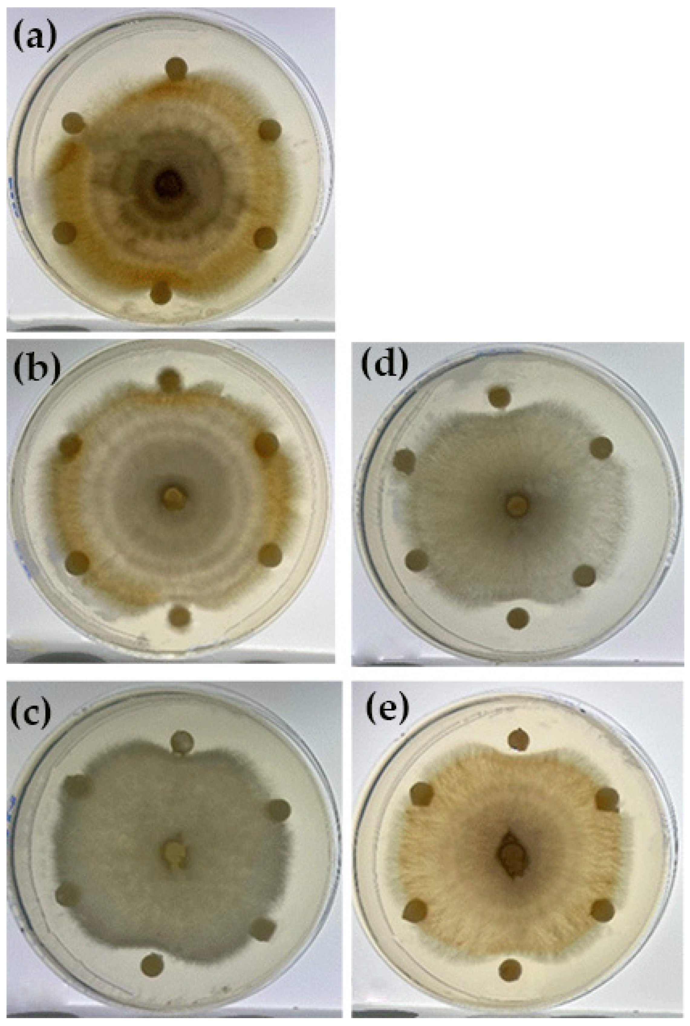 - Espinel-Ingroff, A.; Canton, E.; Fothergill, A.; Ghannoum, M.; Johnson, E.; Jones, R.N.; Ostrosky-Zeichner, L.; Schell, W.; Gibbs, D.L.; Wang, A.; et al. Quality control guidelines for amphotericin B, Itraconazole, posaconazole, and voriconazole disk diffusion susceptibility tests with nonsupplemented Mueller-Hinton Agar (CLSI M51-A document) for nondermatophyte Filamentous Fungi. J. Clin. Microbiol. 2011, 49, 2568–2571. [Google Scholar] [CrossRef]