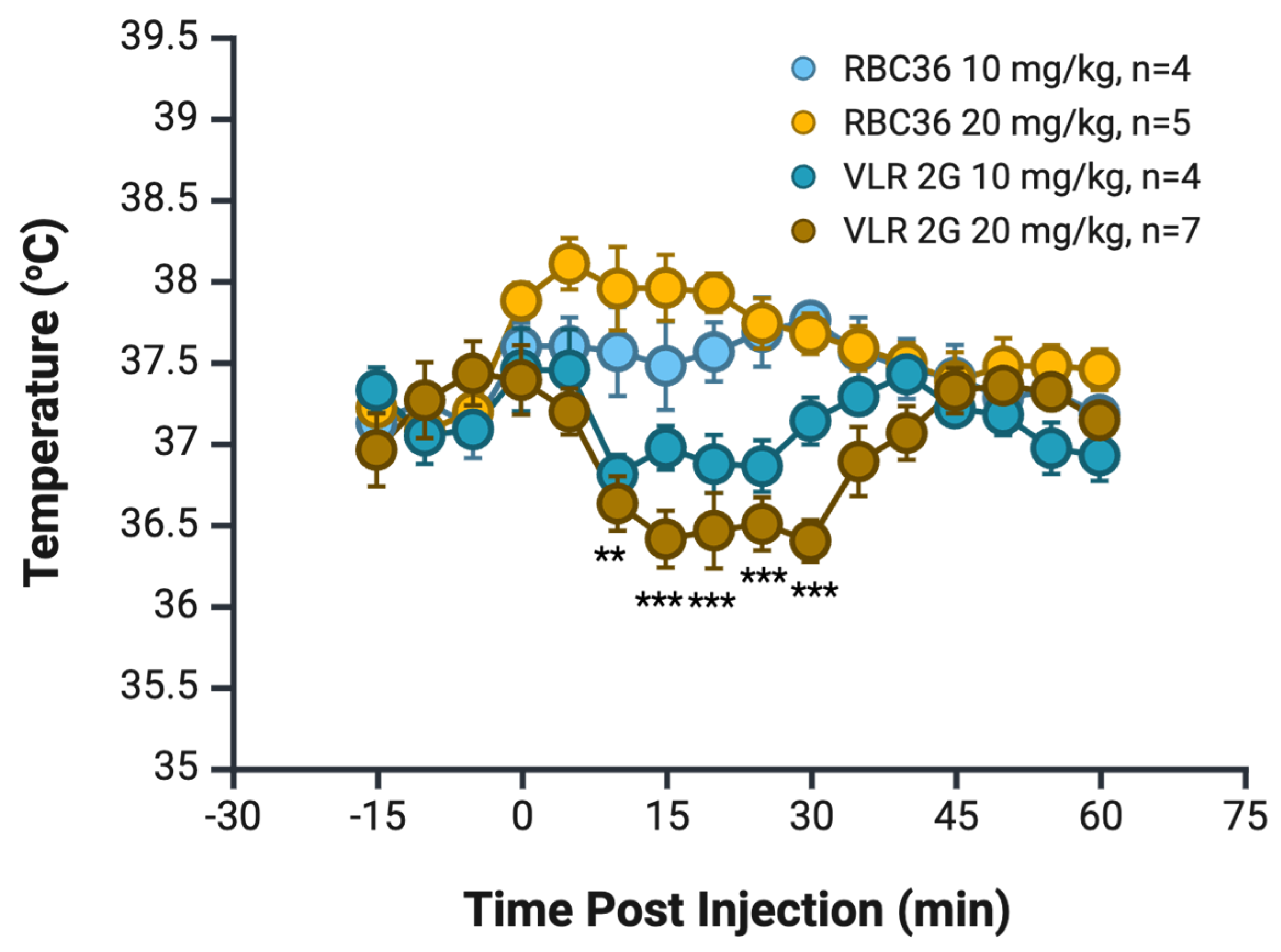 - Ferhat, L.; Soussi, R.; Masse, M.; Kyriatzis, G.; Girard, S.; Gassiot, F.; Gaudin, N.; Laurencin, M.; Bernard, A.; Bôle, A.; et al. A Peptide-Neurotensin Conjugate That Crosses the Blood-Brain Barrier Induces Pharmacological Hypothermia Associated with Anticonvulsant, Neuroprotective, and Anti-Inflammatory Properties Following Status Epilepticus in Mice. eLife 2025, 13, RP100527. [Google Scholar] [CrossRef]