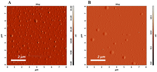 AFM micrographs of the prepared liposomes ((A)—empty liposomes and (B)—liposomal dispersion encapsulating EO).