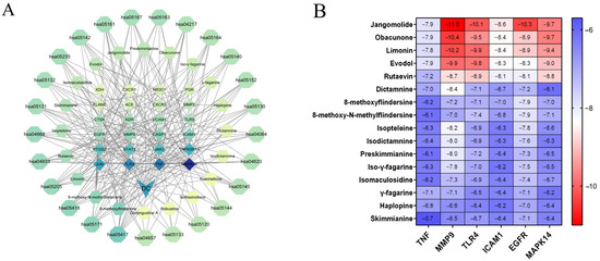- Shi, Y.; Xu, H.; Xu, C.L.; Jin, J.J.; Qin, K.M. Mechanism of Cortex Dictamni in the Treatment of Eczema by LC-MS Combined with Network Pharmacology. World Sci. Technol. Mod. Tradit. Chin. Med. 2022, 24, 2053–2063. (In Chinese) [Google Scholar]