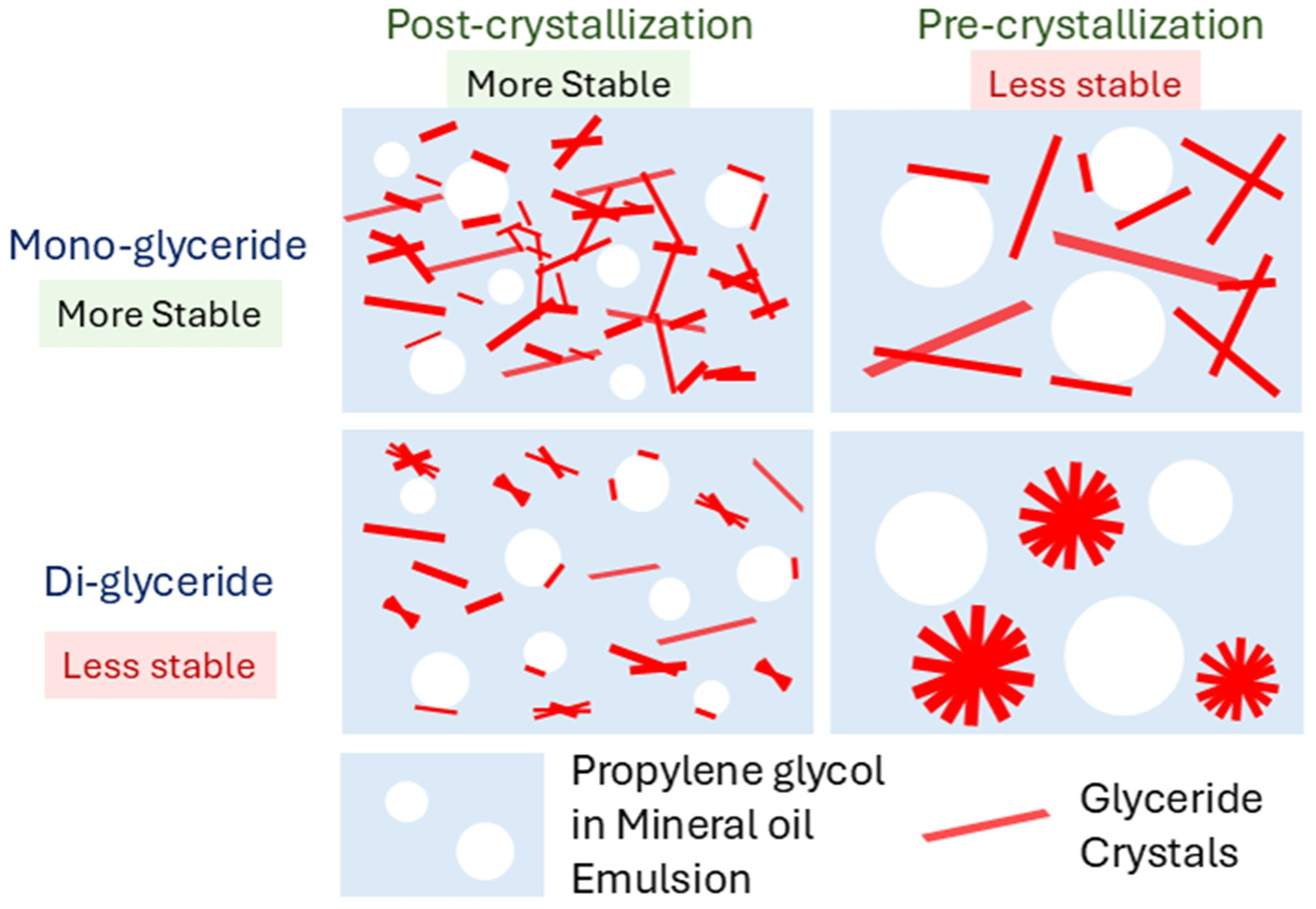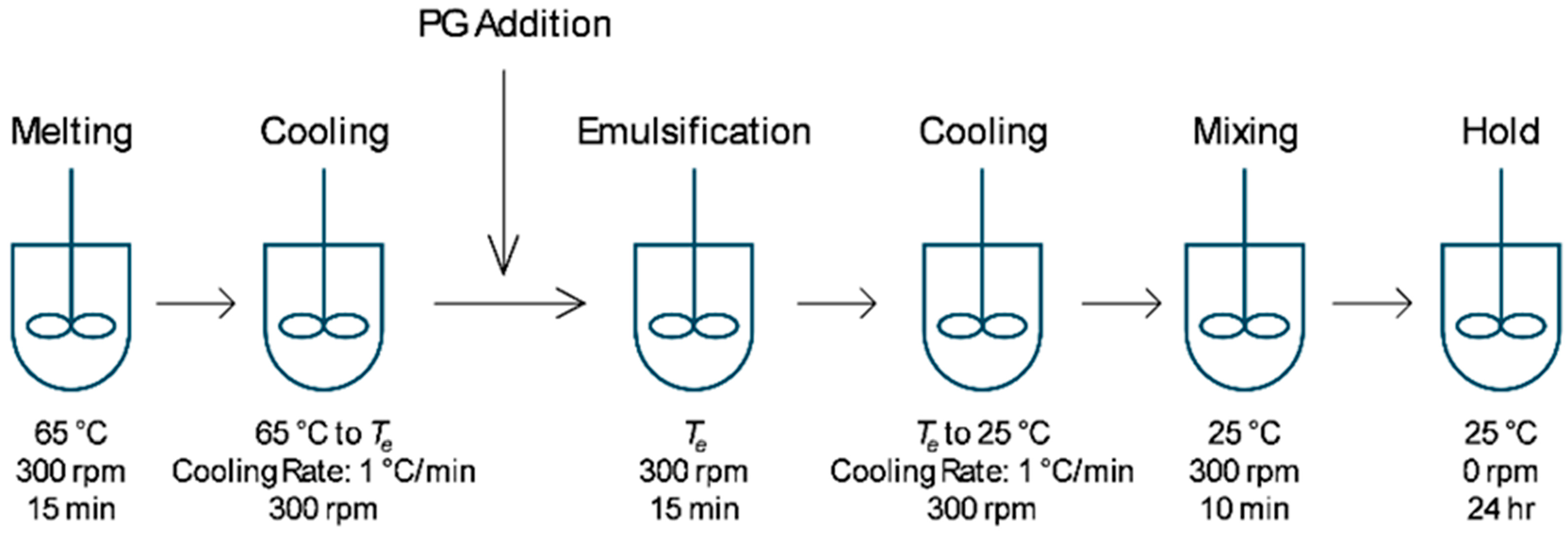 - Ali, S.; Tiwari, A.; Yeoh, T.; Doshi, P.; Kelkar, N.; Shah, J.C.; Seth, J.R. Crystallization and Rheology of Mono- and Diglycerides and Their Role in Stabilization of Emulsion Droplets in Model Topical Ointments. Langmuir 2022, 38, 8502–8512. [Google Scholar] [CrossRef]