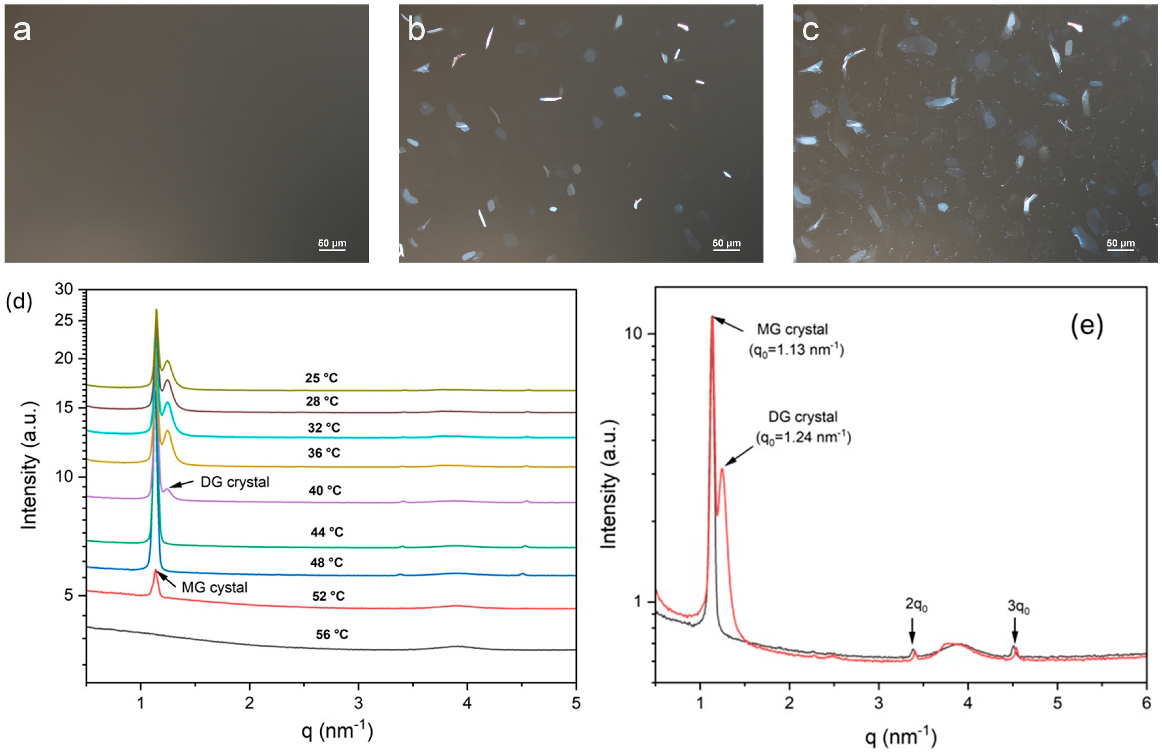 3.1. Crystallization Behavior of MDG in Mineral Oil