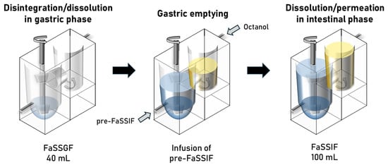 - Masada, T.; Takagi, T.; Minami, K.; Kataoka, M.; Takeyama, S.; Fujii, Y.; Takahashi, M.; Yamashita, S. New Biphasic System in Side-by-Side Chambers for Testing Drug Dissolution and Permeation in Vitro (BiDP System). J. Drug Deliv. Sci. Technol. 2021, 65, 102747. [Google Scholar] [CrossRef]