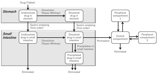 - Jakubiak, P.; Wagner, B.; Grimm, H.P.; Petrig-Schaffland, J.; Schuler, F.; Alvarez-Sánchez, R. Development of a Unified Dissolution and Precipitation Model and Its Use for the Prediction of Oral Drug Absorption. Mol. Pharm. 2016, 13, 586–598. [Google Scholar] [CrossRef] [PubMed]