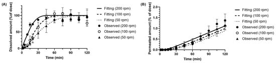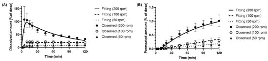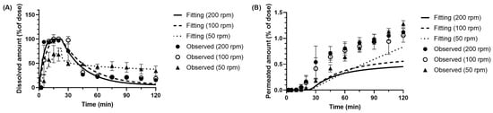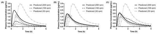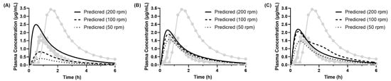 | Dose (mg) | Observed | Predicted (50 rpm) | Predicted (100 rpm) | Predicted (200 rpm) | |