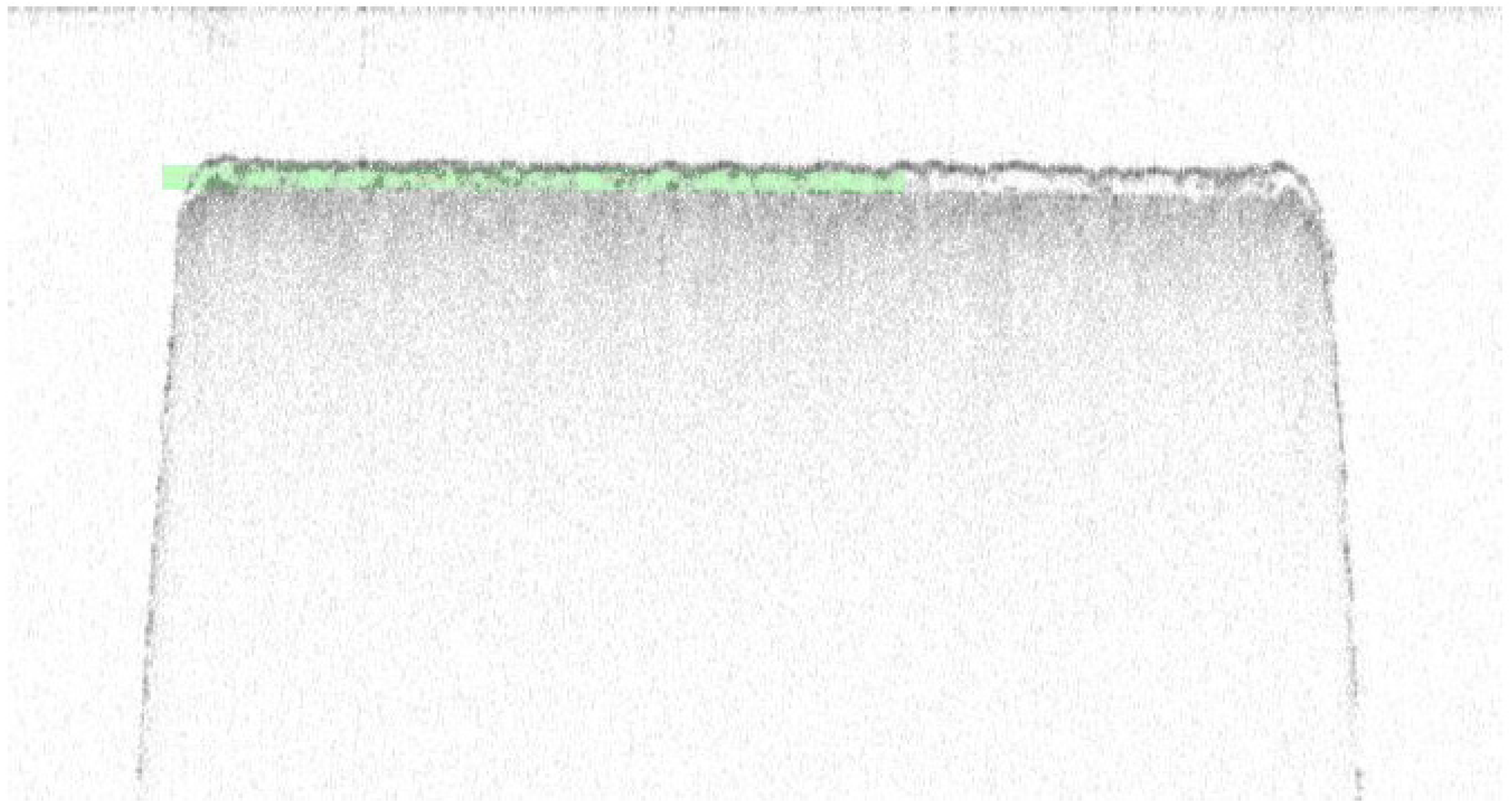 Due to the inconsistencies present in the OCT data using the Wasatch Spark OCT, a second OCT study was conducted with an alternate OCT instrument, the OSeeT by Phyllon GmbH, using Tablet D. This data yielded a mean of 26.4 µm, which is a 54.1% difference from the mean of 46 µm that was gathered from the Wasatch OCT. The plots presented in