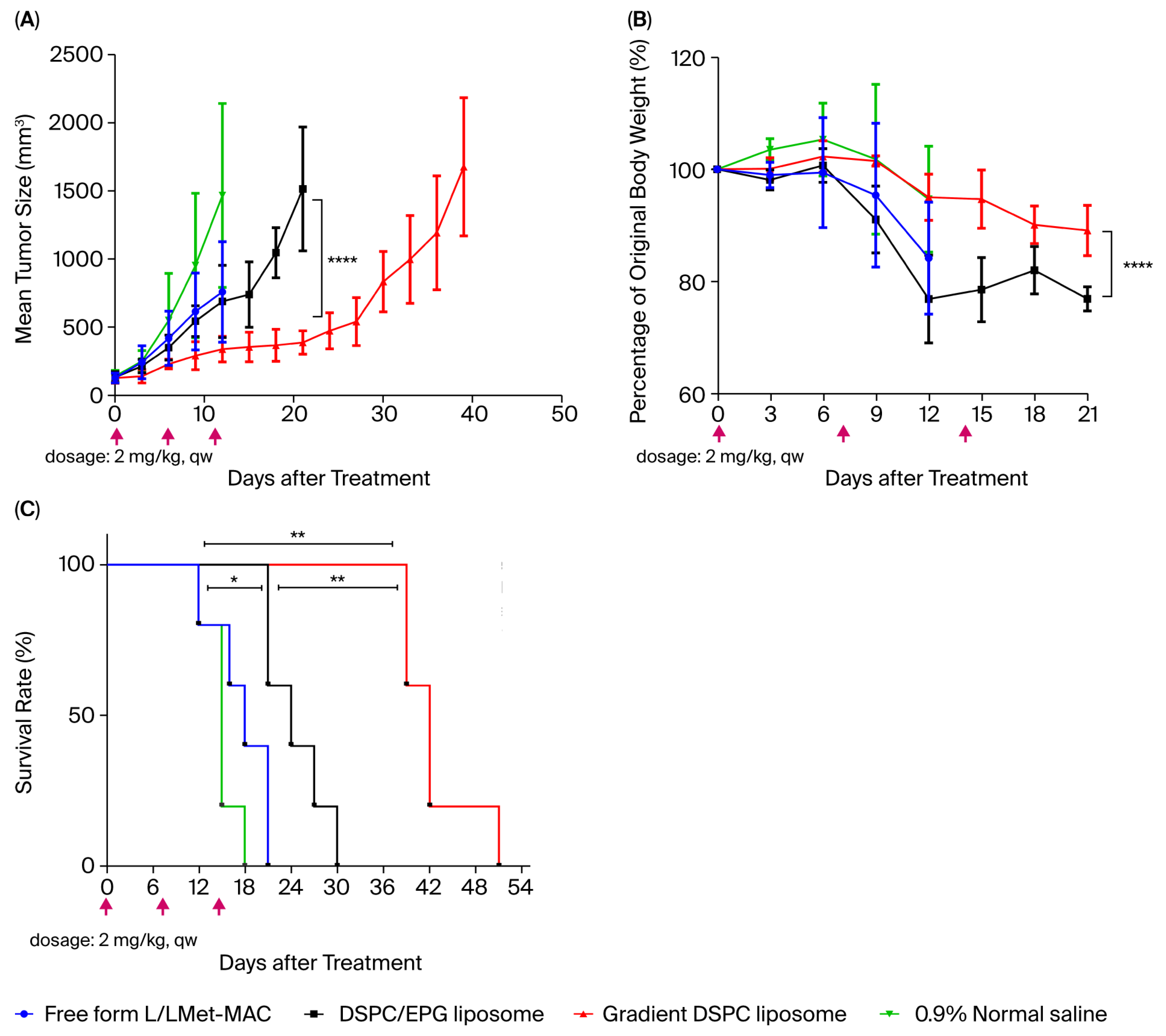 3.4. Animal Studies of DSPC/EPG Liposomes and Gradient DSPC Liposome-Encapsulated L/LMet-MAC