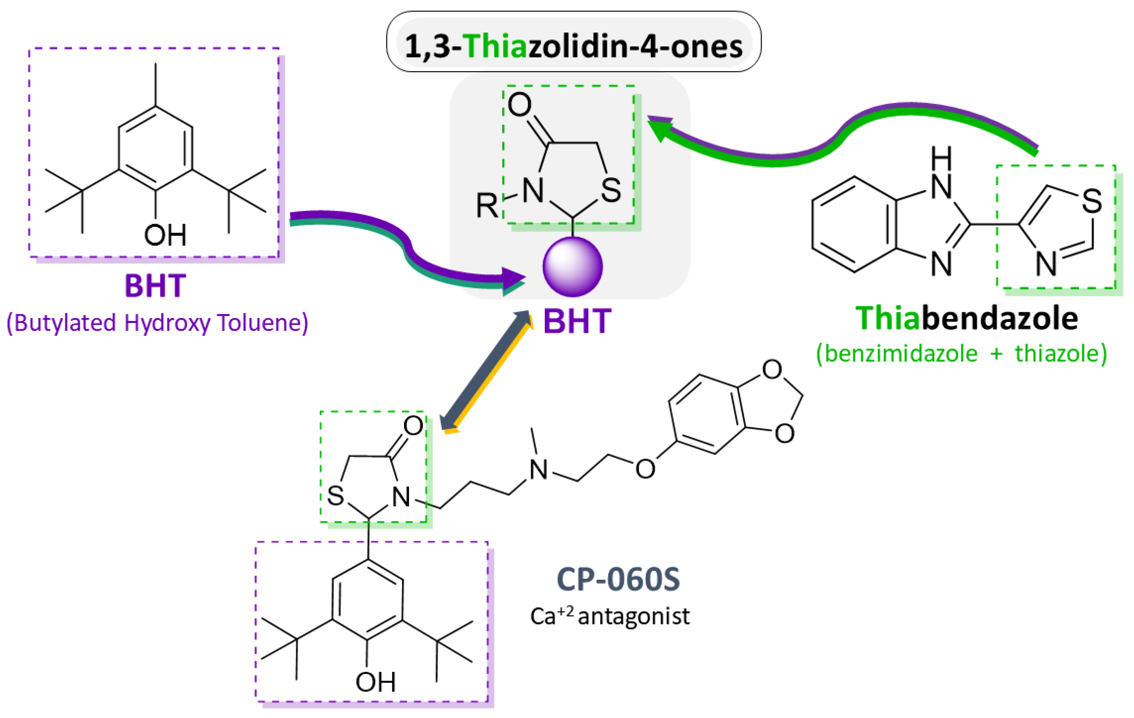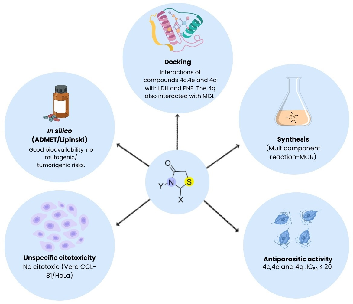 - Tuszewska, H.; Szczepański, J.; Mandziuk, S.; Trotsko, N. Thiazolidin-4-one-based derivatives–Efficient tools for designing antiprotozoal agents. A review of the last decade. Bioorg. Chem. 2023, 133, 106398. [Google Scholar] [CrossRef] [PubMed]