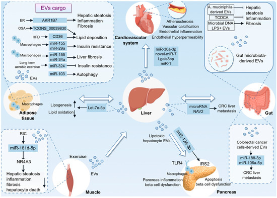 - Mo, W.; Peng, Y.; Zheng, Y.; Zhao, S.; Deng, L.; Fan, X. Extracellular vesicle-mediated bidirectional communication between the liver and other organs: Mechanistic exploration and prospects for clinical applications. J. Nanobiotechnol. 2025, 23, 190. [Google Scholar] [CrossRef] [PubMed]