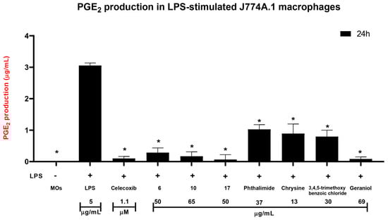 | Sample | Amount (µg/mL) | % Viability ± SD* | PGE2 Production (µg/mL) | % Inhibition ± SD* |