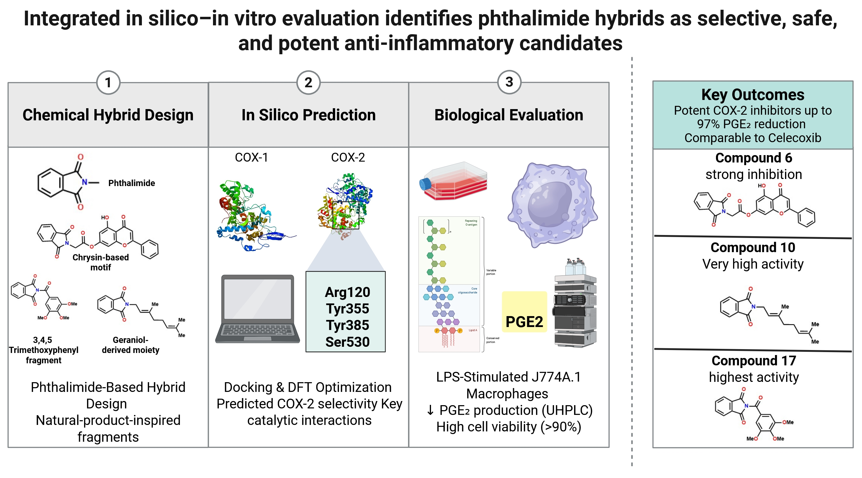 APA StyleHeras Martínez, H. M., Sánchez-Ramírez, B., Landeros-Martínez, L.-L., Rodríguez-Guerrero, D., Espinoza-Hicks, J. C., Zaragoza-Galán, G., Bugarin, A., & Chávez-Flores, D. (2026). Phthalimide Derivatives as Anti-Inflammatory Agents: In Silico COX-2 Targeting and In Vitro Inhibition of PGE2 Production. Pharmaceutics, 18(1), 129. https://doi.org/10.3390/pharmaceutics18010129