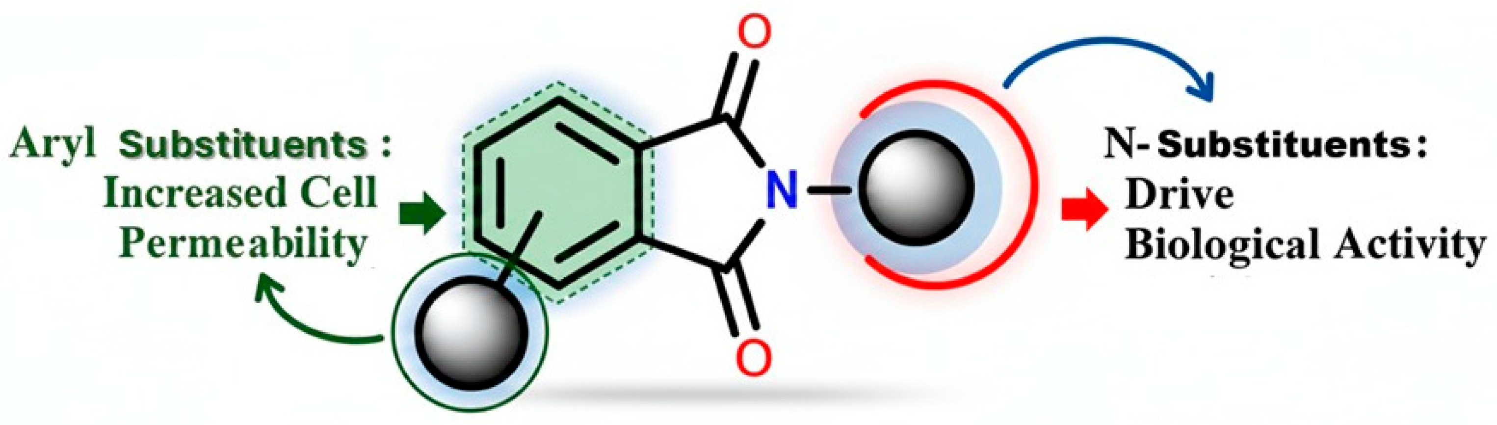 - Heras Martinez, H.M.; Barragan, E.; Marichev, K.O.; Chávez-Flores, D.; Bugarin, A. Phthalimides as Anti-Inflammatory Agents. Future Med. Chem. 2025, 17, 125–142. [Google Scholar] [CrossRef] [PubMed]