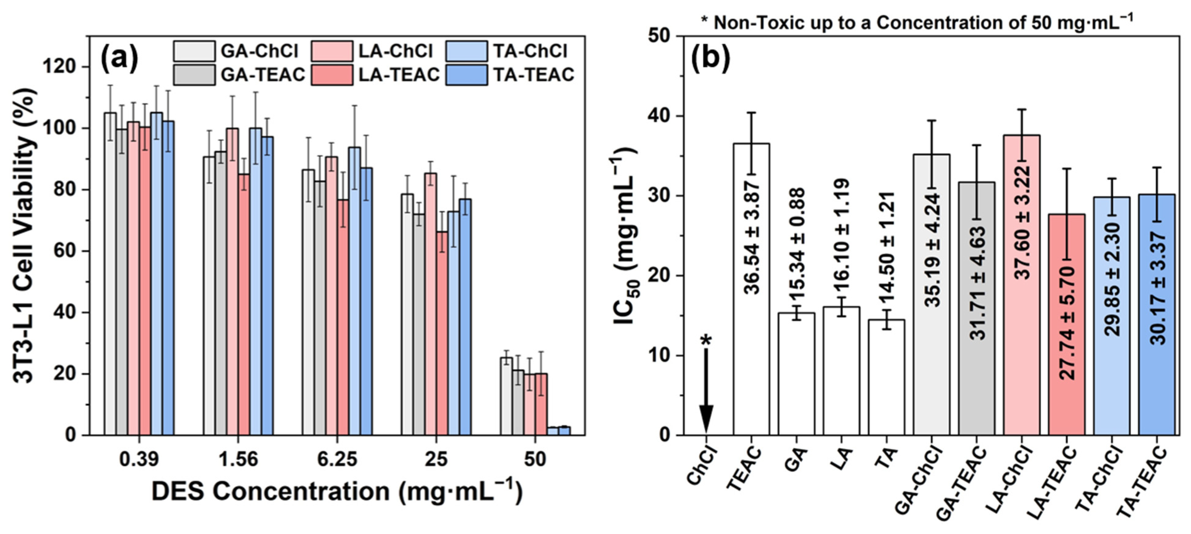 | LA-ChCl | 115.66 ± 2.15 | 1.16 ± 0.02 | 43.33 ± 0.01 | 2.17 ± 0.02 | - |