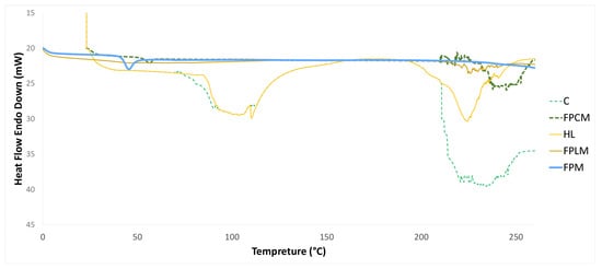 DSC thermogram of HL, C, FPM, FPLM, and FPCM.