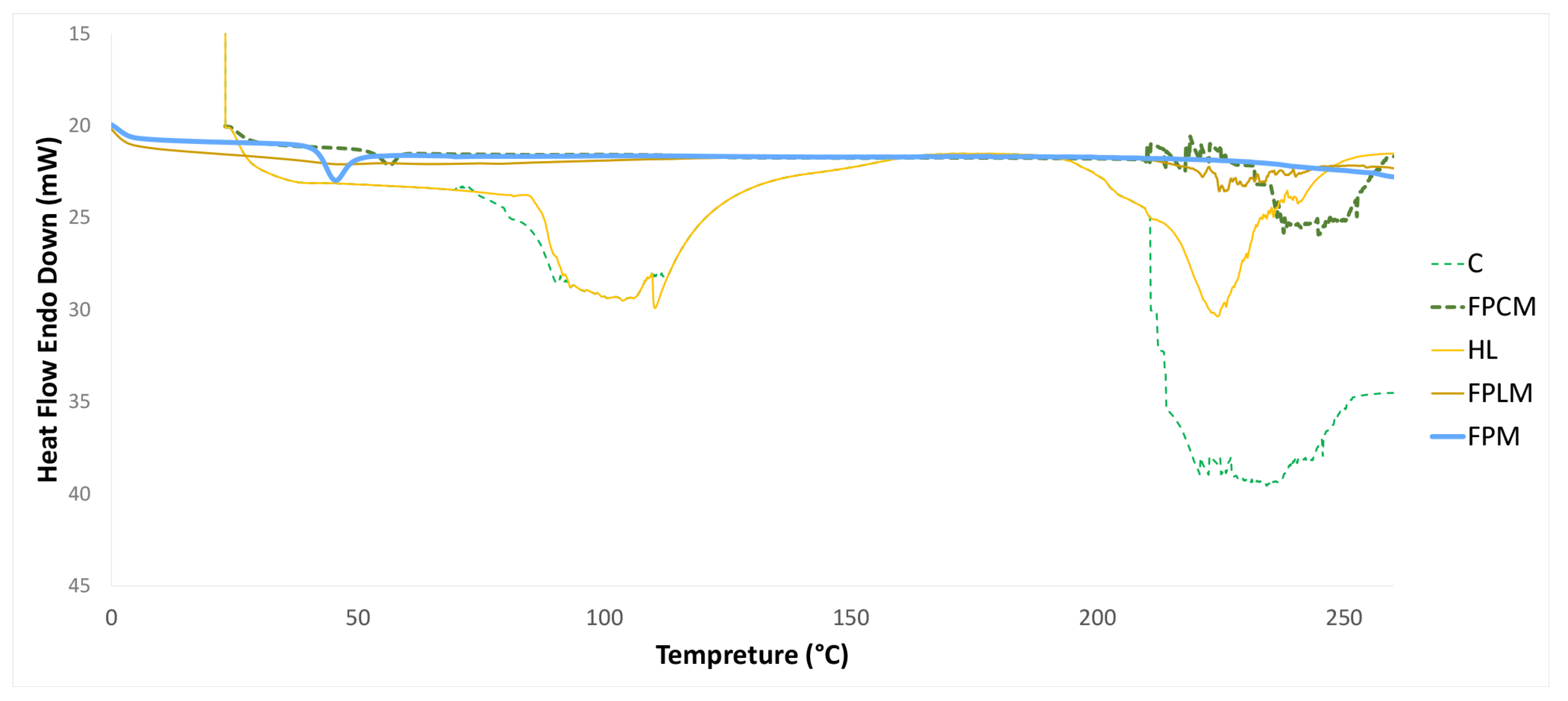 3.2. Determination of Incorporation of PLGA with Polysaccharides Using DSC