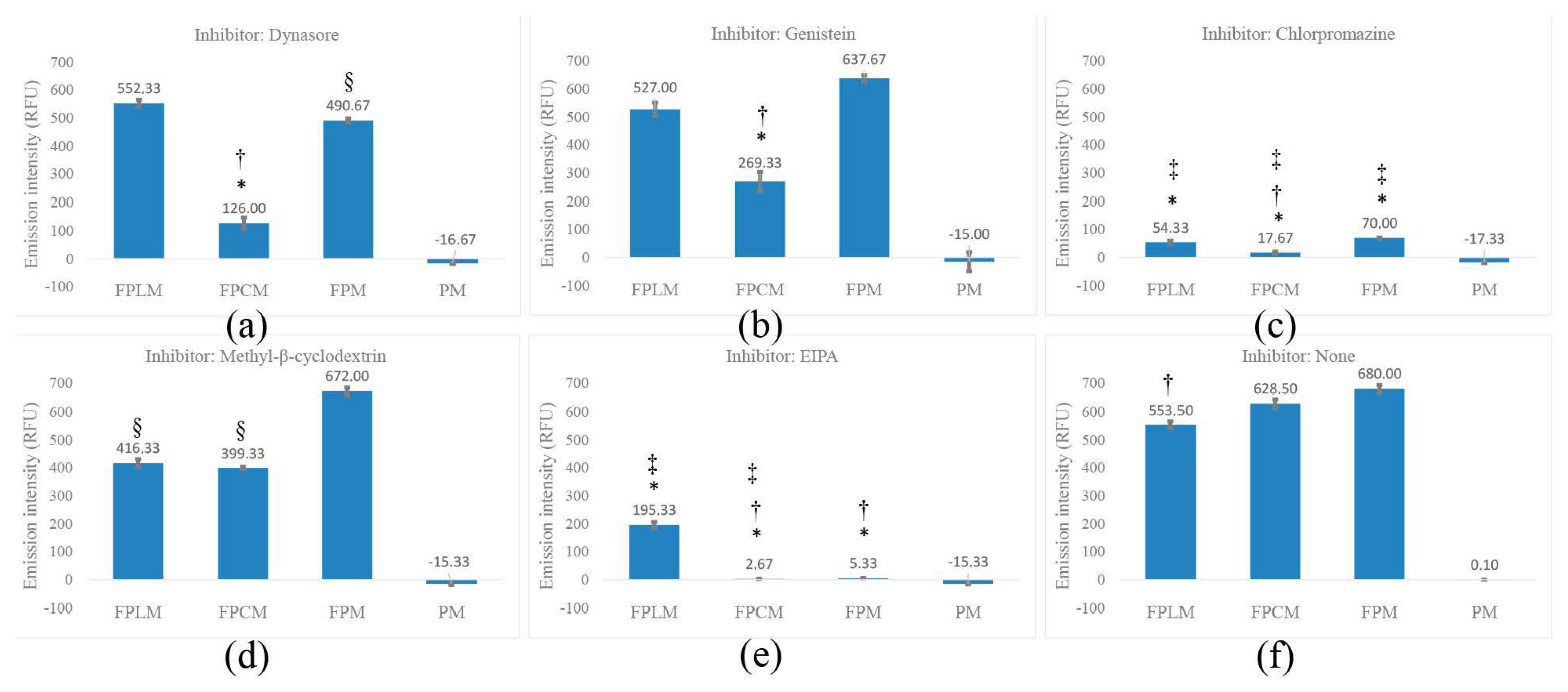 | Pharmacological Inhibitor | Dynsaore | Genistein | EIPA | Chlorpromazine | Cyclodextrin |
