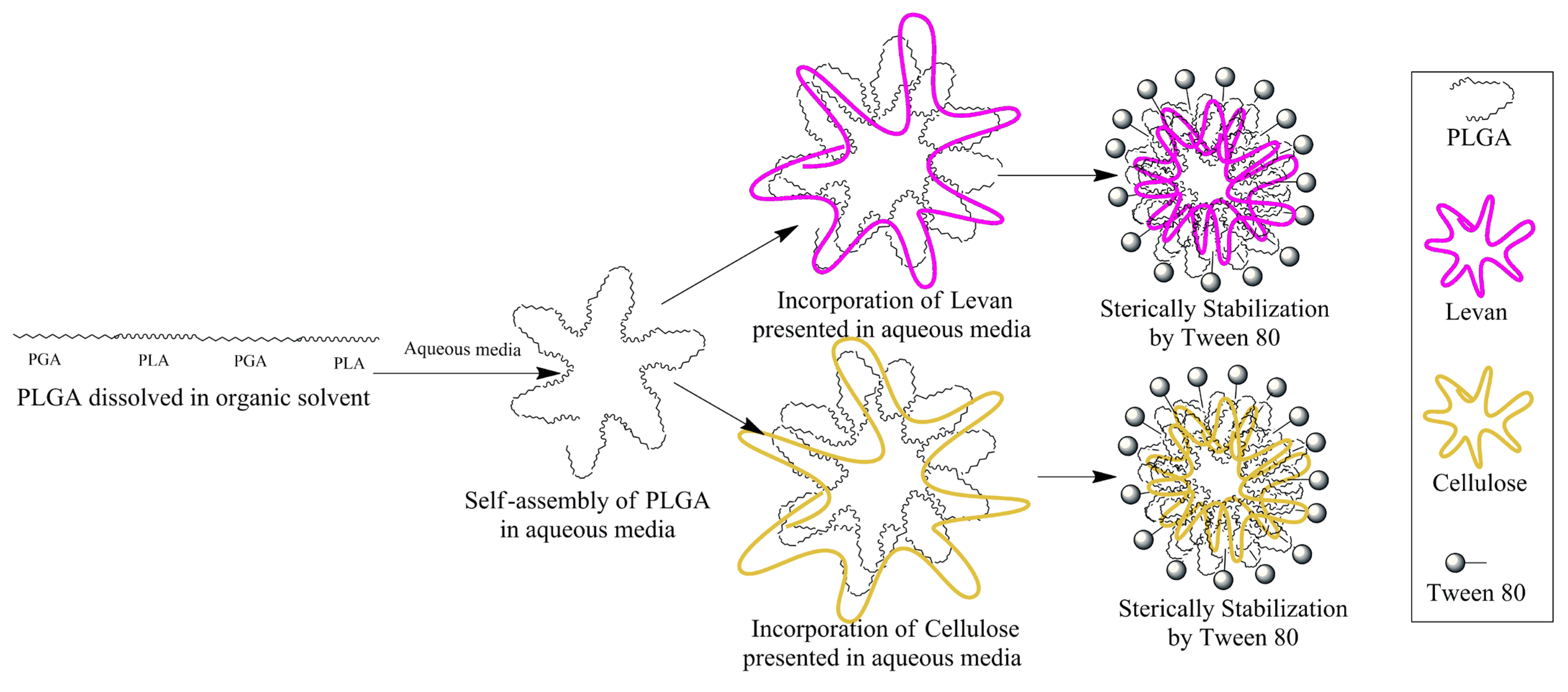 - Bahadori, F.; Eskandari, Z.; Ebrahimi, N.; Bostan, M.S.; Eroğlu, M.S.; Oner, E.T. Development and optimization of a novel PLGA-Levan based drug delivery system for curcumin, using a quality-by-design approach. Eur. J. Pharm. Sci. 2019, 138, 105037. [Google Scholar] [CrossRef]