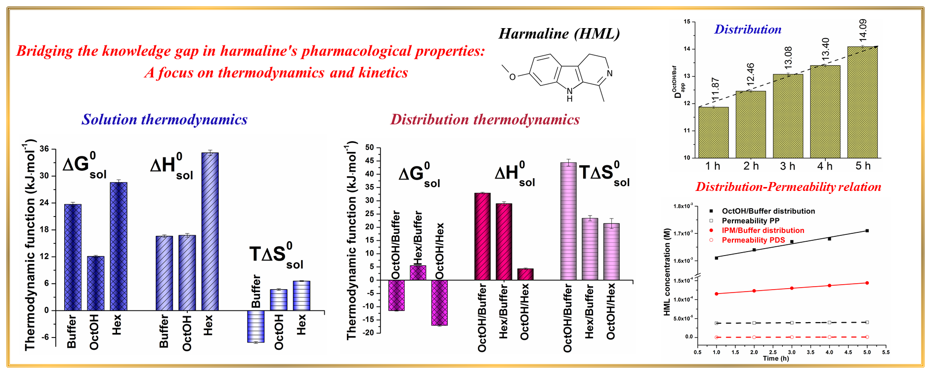 Bridging the Knowledge Gap in Harmaline’s Pharmacological Properties: A Focus on Thermodynamics and Kinetics