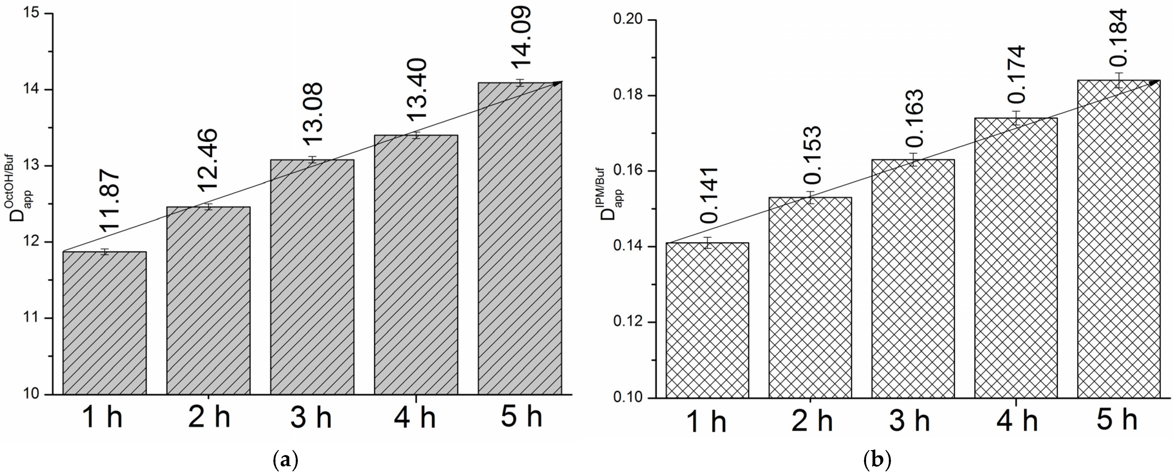 3.3. Distribution Coefficients of HML in OctOH/pH 7.4, Hex/pH 7.4 and IPM/pH 7.4 Systems