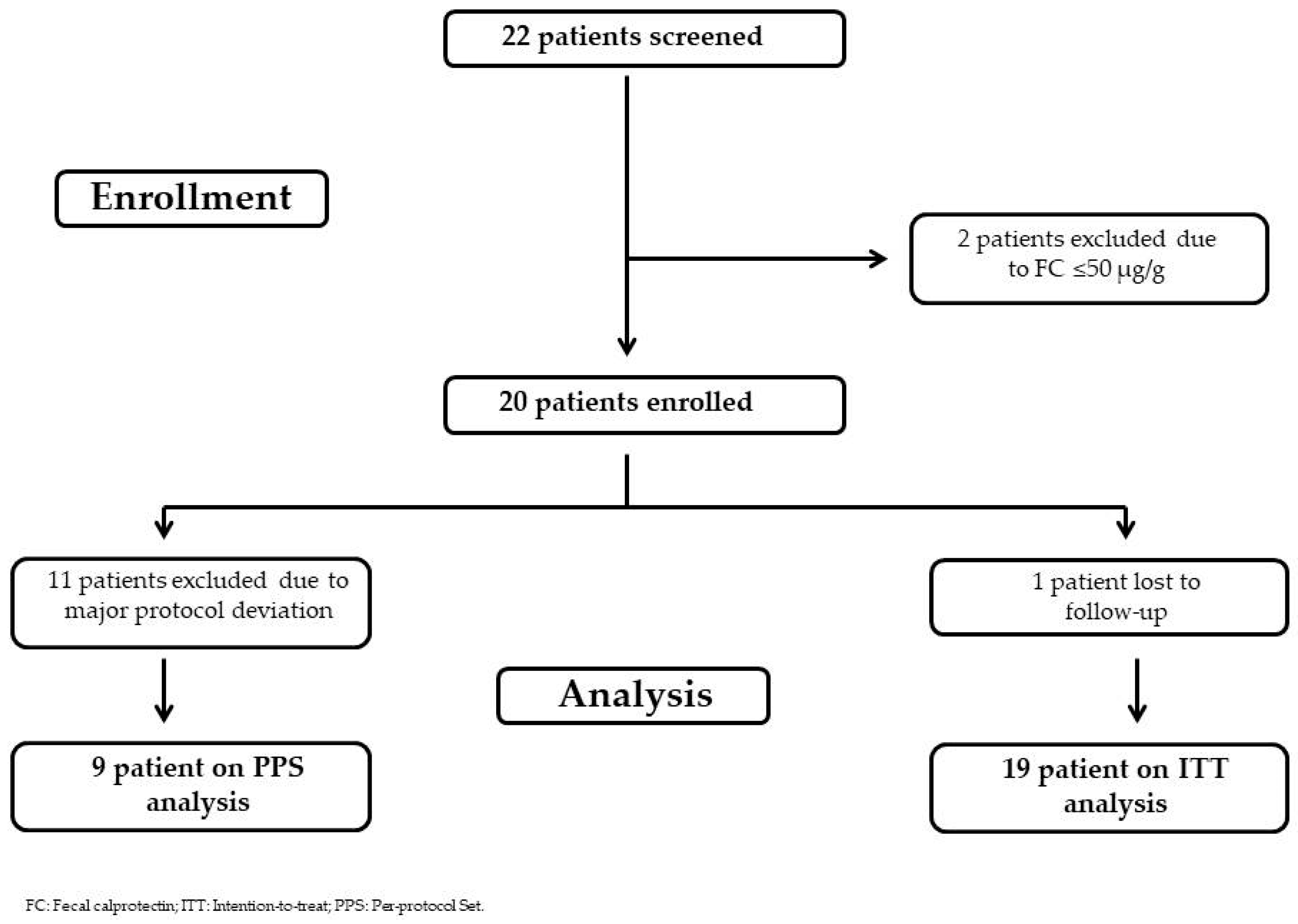 - Intake of antibiotics, mesalamine, probiotics, and Vitamin K antagonists (e.g., Warfarin) in the 30 days prior to screening;